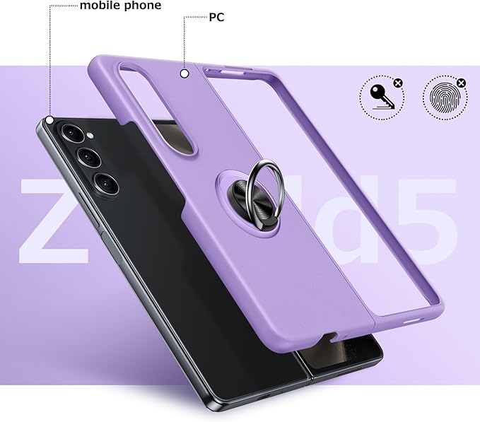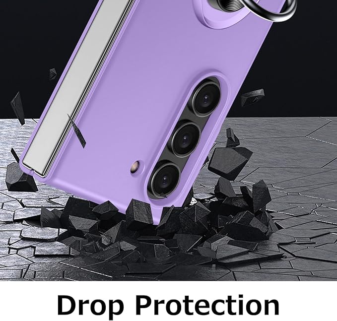 Galaxy Z Fold3 用ケース リング付き スタンド機能 レンズ保護 一体型 SC-55B SCG11 スマホケース ハード PC素材 マットな質感 サムスン ギャラクシーZ Fold3 5G 用ケース 衝撃吸収 シンプル スマホケース 紫 J07-07