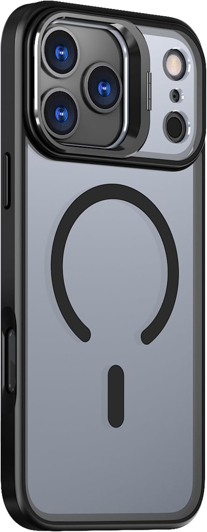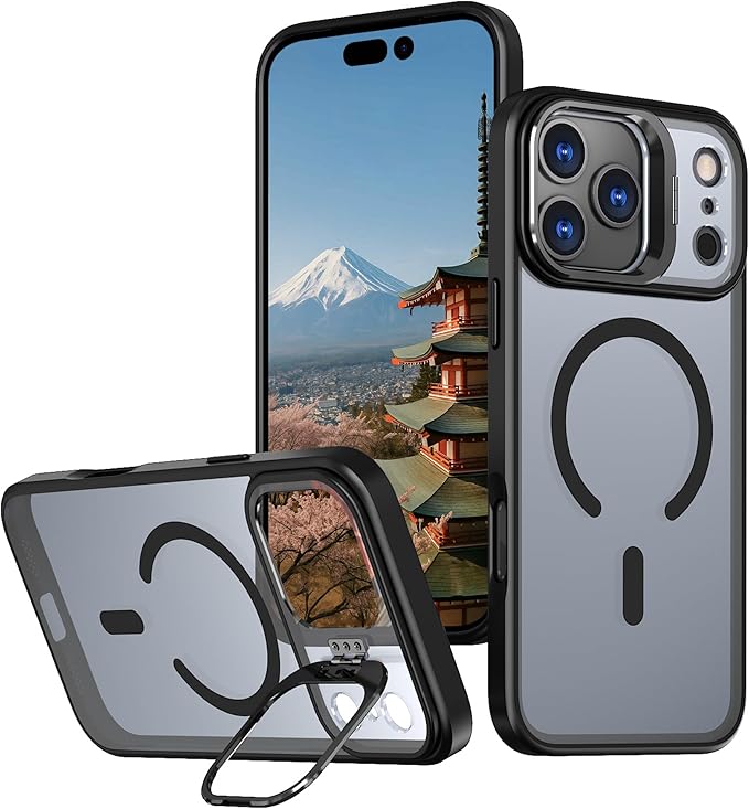 iPhone 17 Pro Max 用 ケース MagSafe対応 180 回転スタンド付き リング付き マットカラー 米軍規格 耐衝撃 カメラ保護 マグネット搭載 ワイヤレス充電対応 軽量 ストラップホール付き (ブラック)