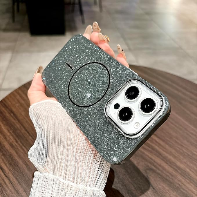 兼用 スマホケース iPhone 17 Pro Max ケース キラキラ ラメ Magsafe対応 おしゃれグリッター 可愛い TPU+PC シンプル マグネット搭載 ワイヤレス充電対応 耐衝撃 黄ばみなし 軽量 薄型 ストラップホール付き (ブラック)