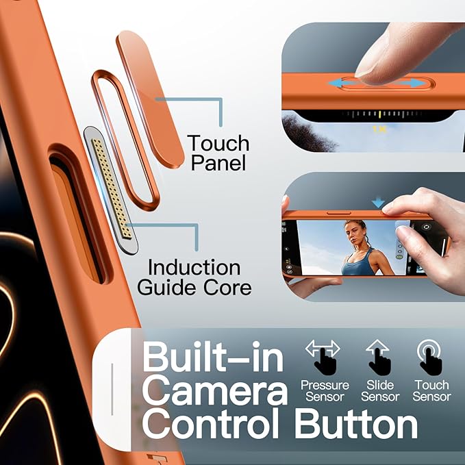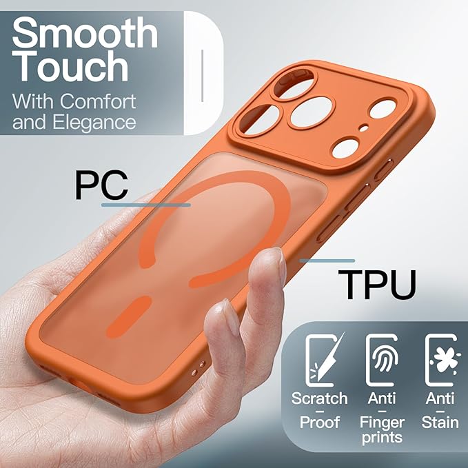 JETech iPhone 17 Pro 6.3インチ用 マグネットケース MagSafeに対応 耐衝撃薄型 スマホカバー 内蔵カメラコントロールボタン マット半透明バック (オレンジ)