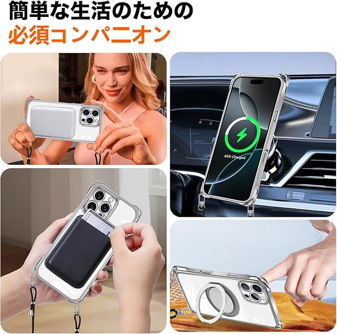iPhone 17 Pro Max 用 ケース 縦横両対応 360 回転スタンド リング マグネット搭載 MagSafe 対応 ワイヤレス充電対応 い phone 17promax ケース 肩掛け 斜めかけ 縄掛け 耐衝撃 車載ホルダー 対応 ストラップ穴付き