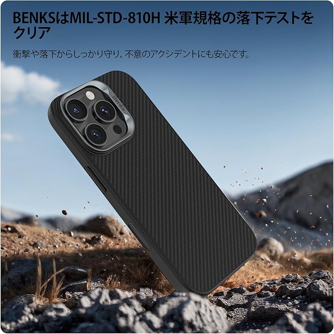 BENKS ArmorPro iPhone 16 Pro Max ケース 耐衝撃 MagSafe対応 米軍規格 TPU素材 レンズ保護 衝撃吸収 落下防止 カメラコントロールボタン付き いphone16pro カメラ保護 ケブラー アラミドファイバー製 スマホケース ミニマル アイフォン16 Pro Maxケース(ブラック)