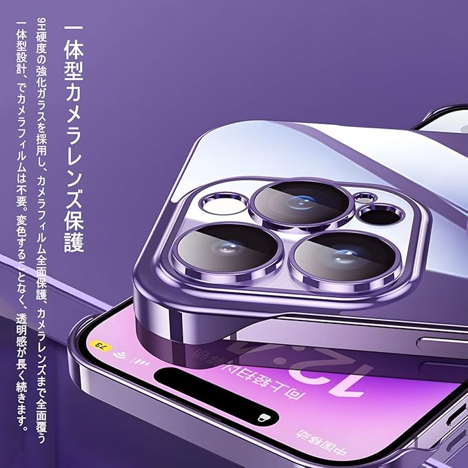 【一体型カメラレンズ保護】9H硬度の強化ガラスを採用し、カメラフィルム全面保護、カメラレンズまで全面覆う一体型設計、別当でカメラフィルムは不要。変色することなく、透明感が長く続きます。