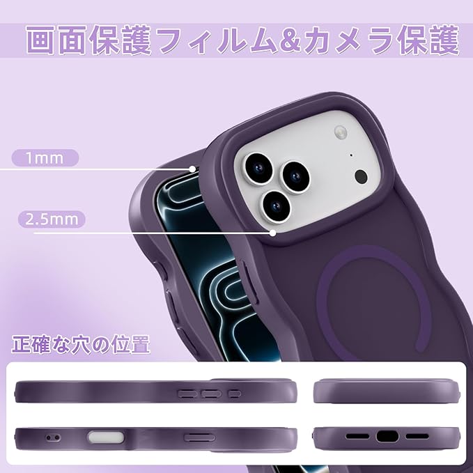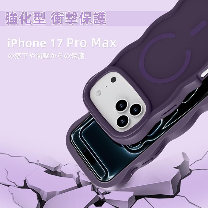iPhone 17 Pro Max ケース MagSafe対応 耐衝撃 半透明 アイフォン17プロマックス ケース マグネット搭載 iPhone17 pro maxカバー 軽量 波形 薄型 マット感 指紋防止 滑り止め 軽薄型 PC背面TPUバンパー 黄変防止 米軍MIL規格 ストラップホール付き ワイアレス充電対応 アップル17 プロマックス用 (ダークパープル)