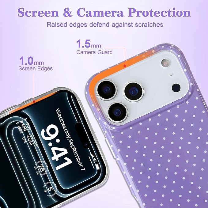 対応機種:対応iPhone 17 Pro Max 6.9インチ専用です。ご購入前に端末サイズをご確認ください。ご使用前にケース外側の保護フィルムを剥がしてください。この可愛い水玉模様のスマホケースはワイヤレス充電に対応しています。女性への素敵なプレゼントです。