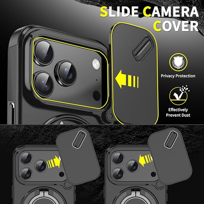 いphone17ProMax 用 ケース Magsafe対応 PC + TPU 二重保護 カメラの保護 落下防止 米軍MIL規格 耐衝撃 アイフォン17ProMax対応 カバー リング付き スタンド付き ブラック 黑