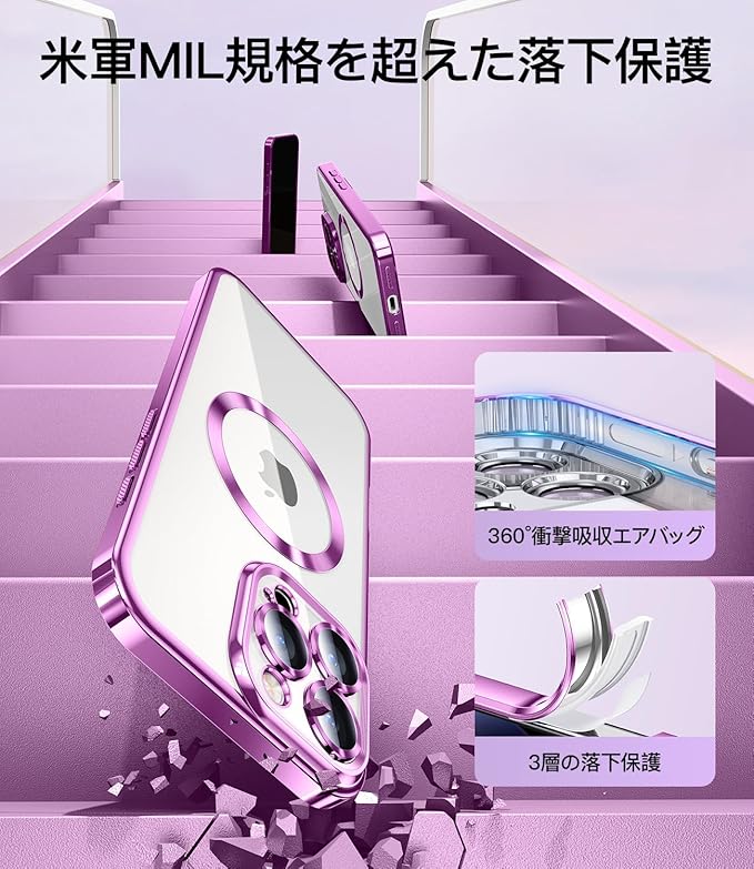 【高級感溢れる・光沢感抜群】JUESHITUO 光沢のあるクリアな磁気スマホアイフォンケースは、iPhone 16 Pro Max 用に特別に設計されています。このケースは柔らかいTPUバンパーと透明な背面で作られています。バンパーは独自の電気めっき技術を使用し、ソフト TPU を金属電気めっきコーティングで覆います。あなたの携帯電話ケースを着用して、携帯電話の美しさを鑑賞しましょう。
