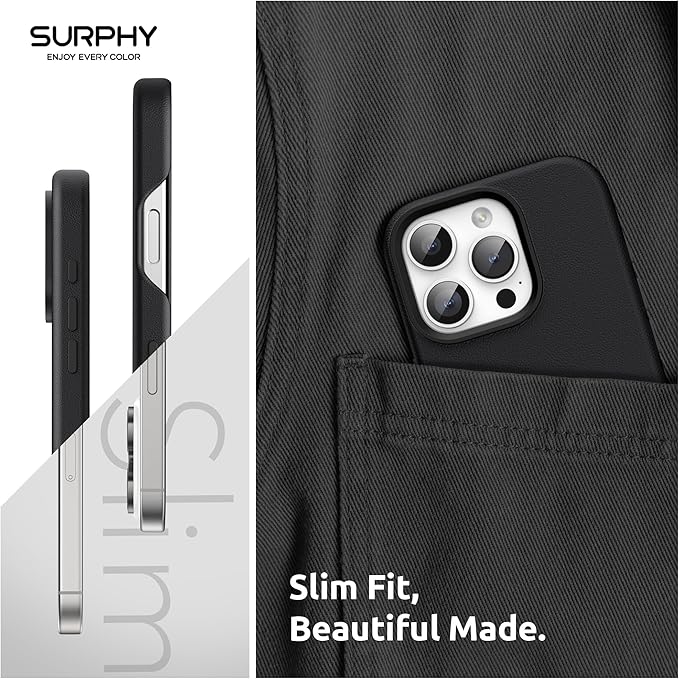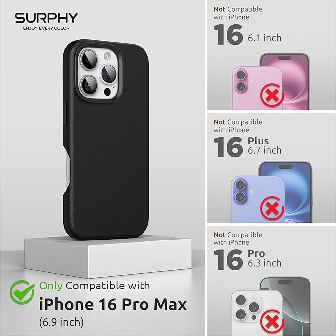 SURPHY iPhone 16 pro max用ケース レザー,MagSafe対応 6.9インチ対応(2024) 携帯ケース iphone16 pro max PUレザー マグネット搭載 内側はマイクロファイバーが付く(ブラック)