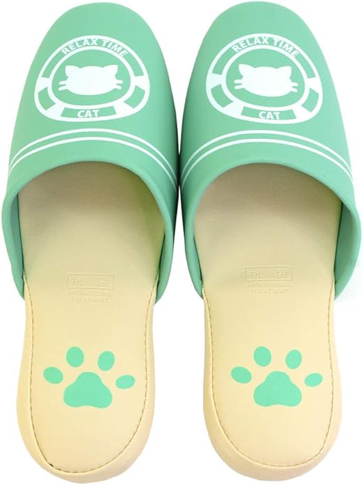 かわいいネコのマークがプリントされた抗菌スリッパ。