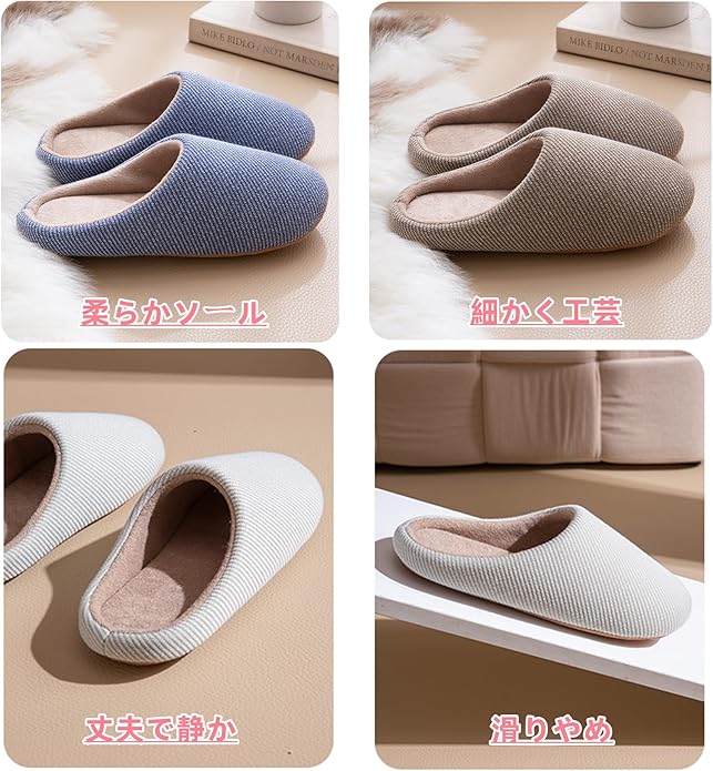 [Fanyker] ルームシューズ スリッパ 来客用スリッパ レディース メンズ 洗える 静音スリッパ 室内 部屋履き ルームスリッパ 低反発 男女兼用 オフィス トイレ カップル 滑り止め 履き心地良い 軽量 自宅用 職場 洗濯可 | peaceFull store