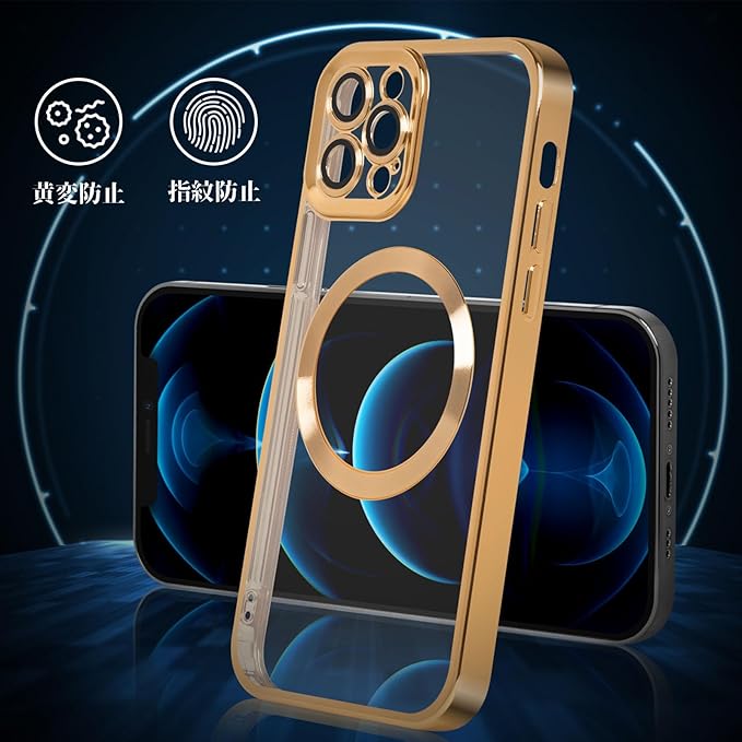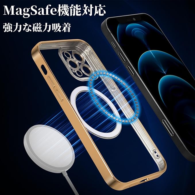 iPhone12promax ケース クリア 米軍MIL規格 Magsafe対応 ワイヤレス充電対応 指紋防止 2023年新型 iPhone 12 Pro Max 用 ケース 6.7 インチ マグネット搭載 耐衝撃 黄ばみなし (ゴールド)