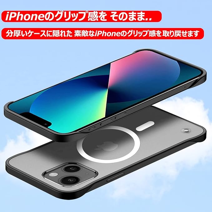 iPhone12ProMaxケース magsafe対応 フレームレス マグセーフ ケース frameless case 新型 薄型 軽量 黄ばみなし レンズ保護 スリム グリップ感 持ちやすい ワイヤレス充電 MagSafe 対応 6.7インチ アイフォン 12 Pro Max 用 カバー 黒 ブラック
