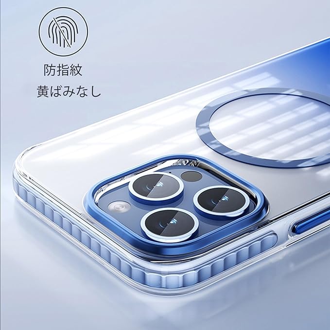 Angeo iPhone 16 Pro Max 用 ケース グラデーション透明 MagSafe対応 ワイヤレス充電 マグネット搭載 耐衝撃 薄型 バンパー 傷に強い背面 黄ばみなし 防指紋 い マグネット ケース iPhone16 pro max 用ケースクリア 保護 iPhone 16Pro Max 用 クリア 保護ケース、グラデーションブルー