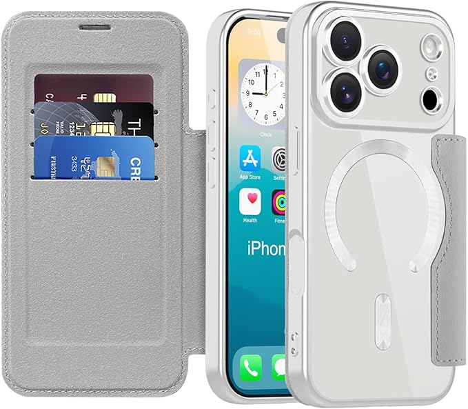 iPhone 17 Pro Max 対応手帳型ケース 背面クリア MagSafe充電対応 カード収納 レザーケース カメラ保護 画面保護 RFID 盗難防止 前後保護 ストラップホール付き 全面保護,ブラウン