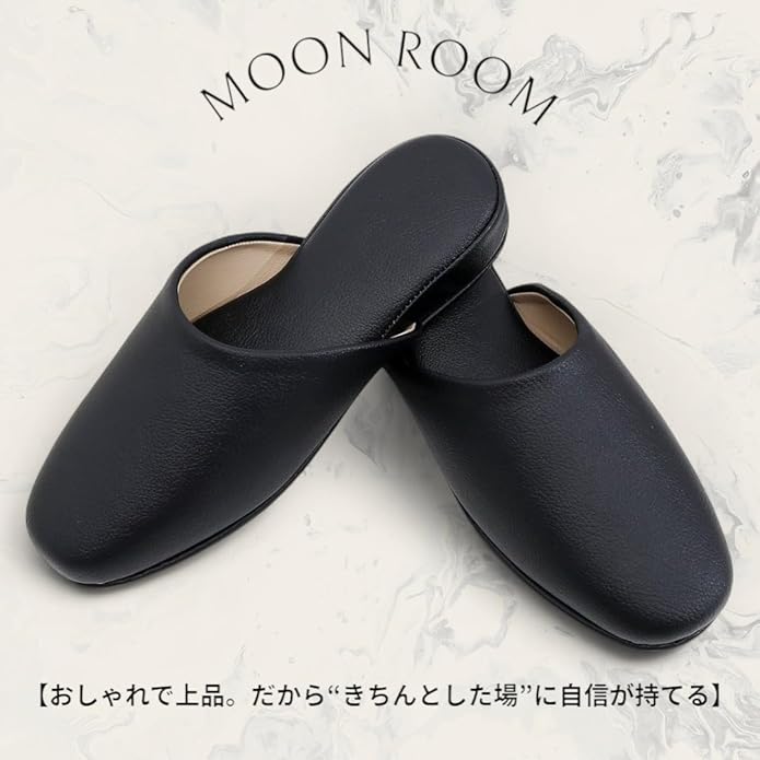 [MOON ROOM] 高級PUレザー室内スリッパ 水拭きOK 防汚加工済 メンズ レディース 卒業式 入学式 お受験 授業参観用 黒