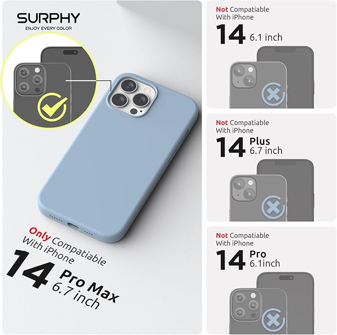 「4 in 1」SURPHY iPhone14 pro max用ケース+スクリーンフィルム2枚+カメラフィルム1枚, 6.7インチ(2022) MagSafe対応 シリコンケース iPhone14 pro max用ソフトカバー (ブルーフォグ)