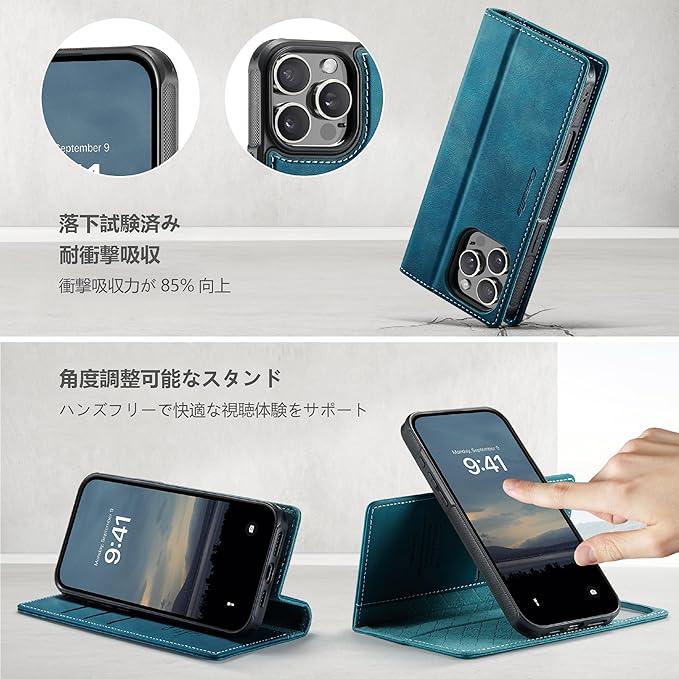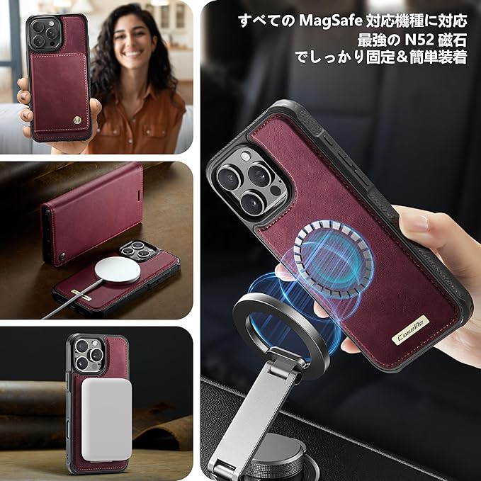 iPhone 17pro max ケース 手帳型 2in1 分離式 背面カード収納 レザー RFIDブロック MagSafe対応 耐衝撃 スタンド機能 横置き マグネット開閉 エッジ滑り止め 指紋防止 全面保護