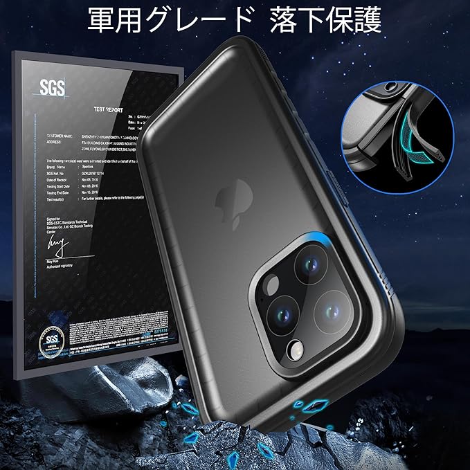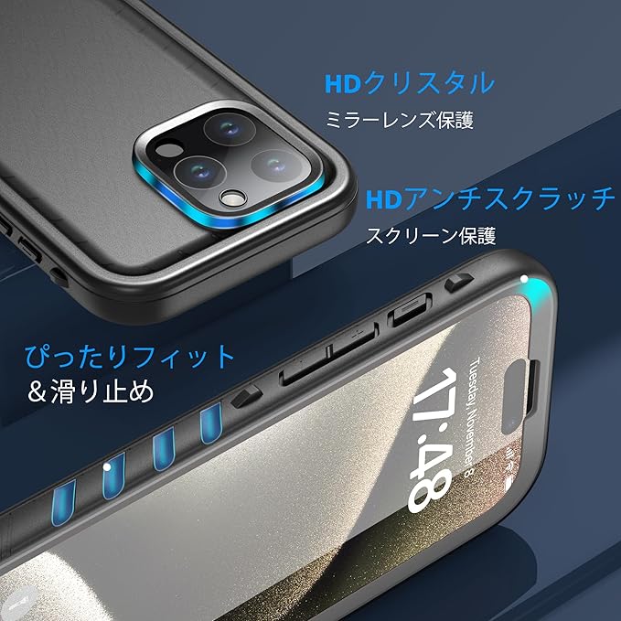 【耐衝撃&全面保護】軍用MIL規格810G-516防振材料が採用されていますので、衝撃にとても強いです。1000回開閉操作しても完全密閉の効果が保持できます。360 全方位からアイホン 15 Pro Maxを保護してくれます。夏の海、プール、砂浜と冬のスキー場など、様々な場所で携帯を快適に活用できます。建築の工事に使用は一番最適です。