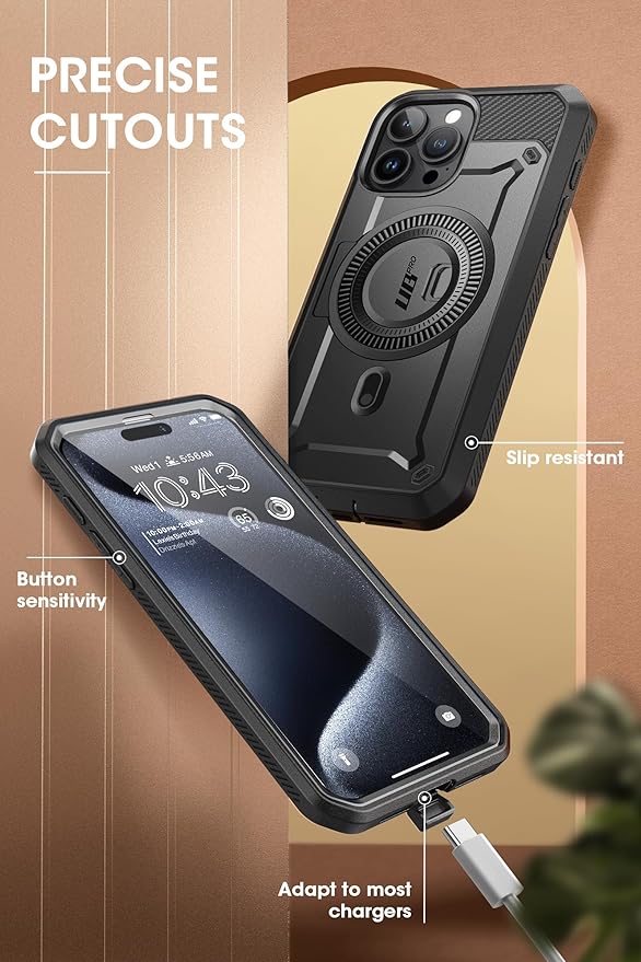 SUPCASE iPhone 15 Pro Max ケース 6.7インチ用 2023 磁気ケース MagSafe対応 米軍MIL規格取得 衝撃吸収 全面保護 画面フィルム付き スタンド付き ベルトホルダー機能 ワイヤレス充電 MagProシリーズ