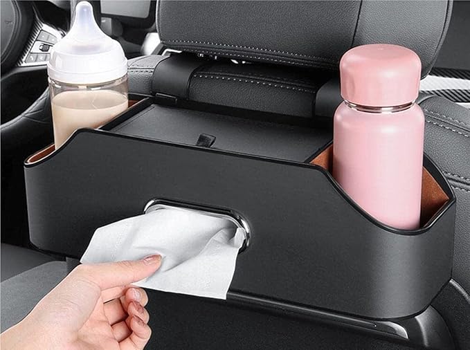 《お子様や同乗者と一緒に旅行する方の必需品》 - カップホルダーとティッシュボックスを備えた当社の車後部座席オーガナイザーは、車をきちんと整頓し、ロードトリップをより楽しく快適にします。 2つのカップホルダーが含まれており、さまざまなサイズの飲み物をしっかりと保持し、こぼれを防ぎます。
