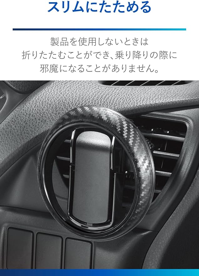 車のエアコン吹き出し口に取り付ける、質感の高いカーボン柄リングのドリンクホルダー