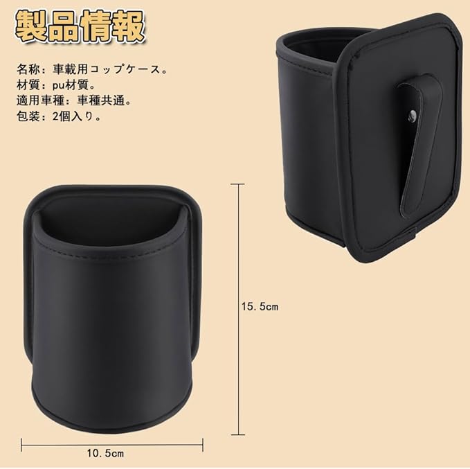 ドリンクホルダー 車 カップボックス 小物収納 PUレザー製 シートポケット 車用 多機能収納ボックス 小型ゴミ箱 収納 増設 ドア 後部座席 ウォーターカップボックス 携帯電話/カード/サングラス対応 工具不要取付 コンビニコーヒー/水筒対応 汎用 車内収納 黒 2個入り