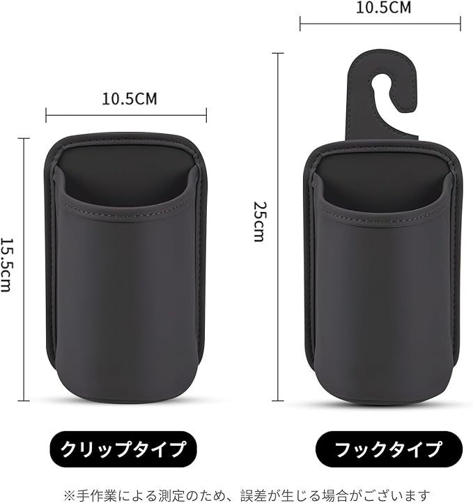 【2つの装着スタイル】フック式とクリップ式の2タイプ。フック式はシートヘッドレストに掛けるだけでスペースを有効活用でき、ドリンクを手の届きやすい位置に配置可能。クリップ式はシートサイドやヘッドレスト下部にしっかり固定可能。ワイドで堅牢なクリップ設計で、走行中も安定して保持します。