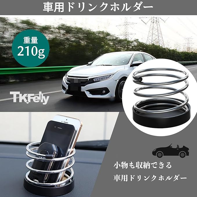ドリンクホルダー 車 スプリング 両面 卓上 固定 スマホ 小物 黒 ペットボトル