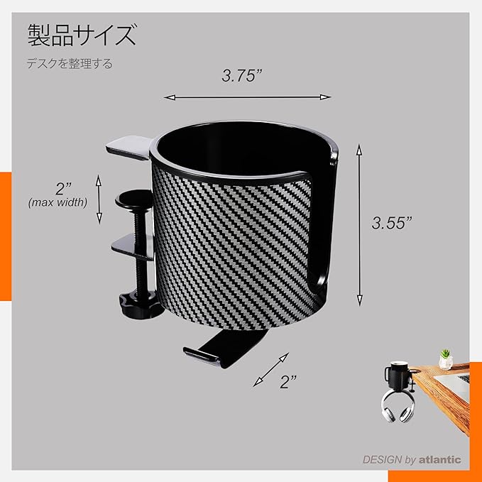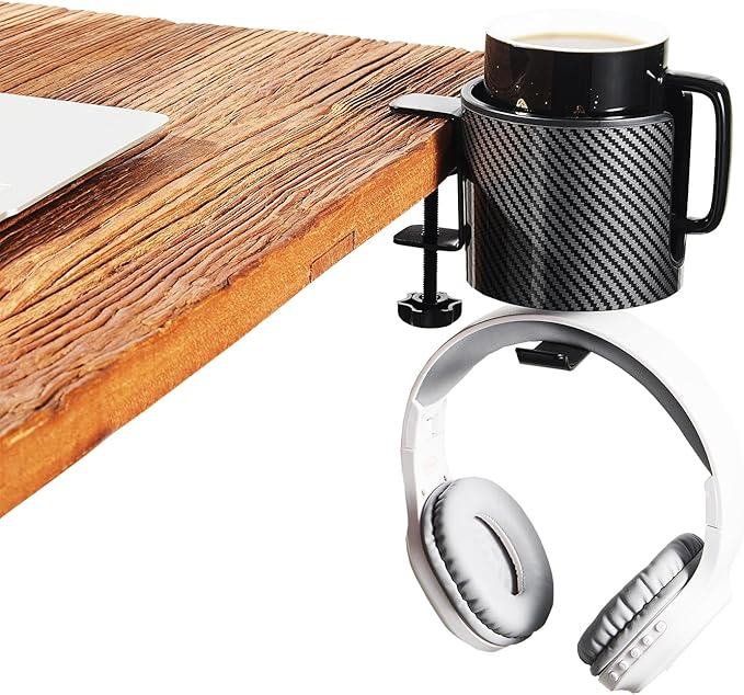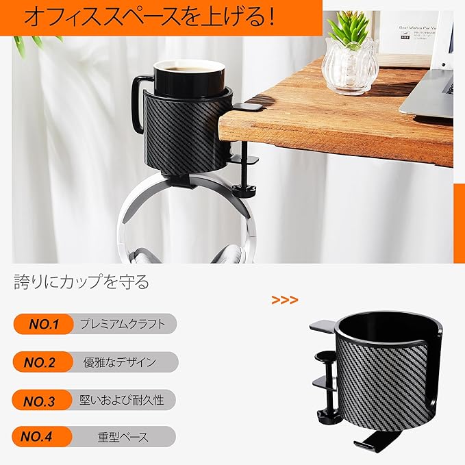 ラグジュアリー2 in 1ドリンクカップホルダー,ドリンクホルダー デスク カップホルダー ドリンクホルダー 多機能収納ラックコンピューターデスク、イヤホンホルダー (carbon design)