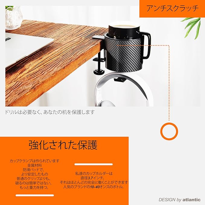 2イン1機能:多目的なデザインは、どこでもマウントすることができます(2インチの厚さ以下で)あなたの机の表面にそれをクリップすることができます/カップ/ヘッドフォンスタンドは、クラッタを減らすためにあなたの最良の選択です。固定上部のホルダーはカップや他の飲料容器を保持することができる、下のホルダーは、すべてのヘッドフォンを保持することができます。