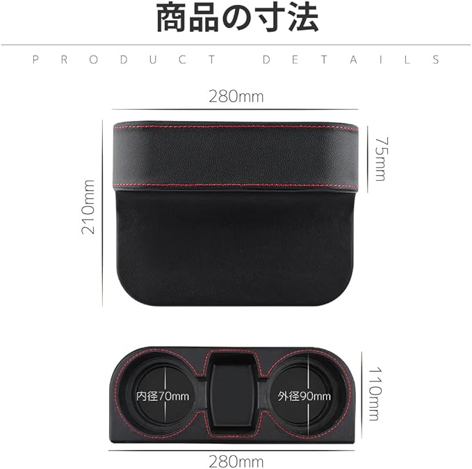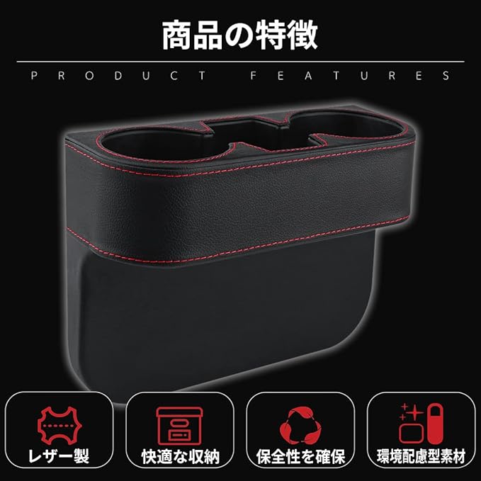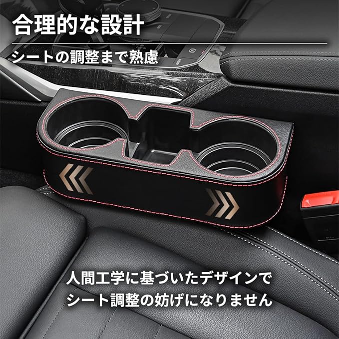 車用 サイド収納ボックス PUレザー シートポケット カップホルダー 収納ボックス 差し込み 隙間 収納 運転席 助手席 ブラック
