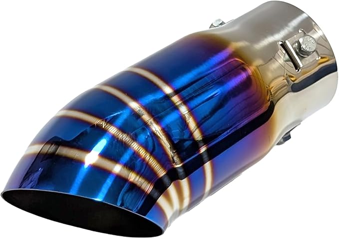 汎用 マフラーカッター ステンレス ターンアウト 下向き 下出し 3点ボルト 内径35mm~63mm カスタム パーツ チタンブルー