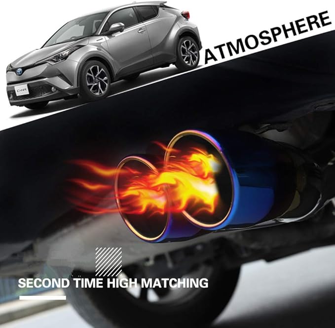 Onami トヨタ C-HR マフラーカッター マフラー オーバル 下向き 2本出し チタン風 排気口 耐食性 外装パーツ アクセサリー カスタム TOYOTA CHR専用 ZYX10/NGX50 ステンレス 1P 【ブルー焼き入れ】CHR007-KL
