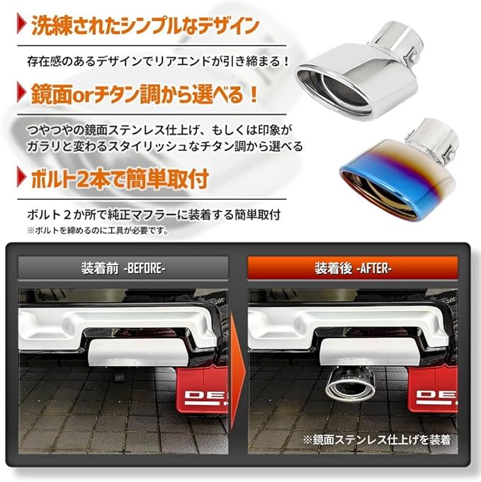 CORSA デリカミニ 適合 マフラーカッター 1本出し シルバー 鏡面 円形 丸型 落下防止 メッキ カスタム 外装 パーツ アクセサリー ドレスアップ ステンレス チタン delica mini (チタン調) [2] S