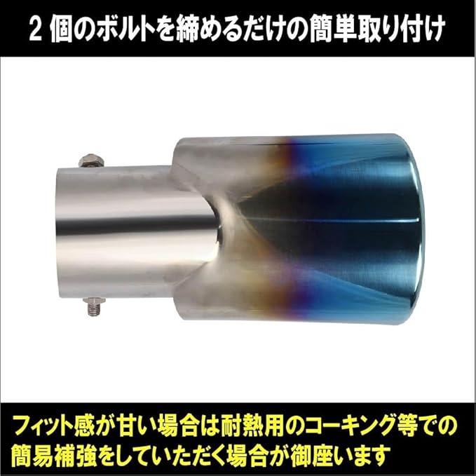 【商品内容】・本体 1個(ボルト等付属)【材質】 ・ステンレス製【カラー】・ブラック/シルバー/ブルー の3種類をご用意しております【対応車種】◆ トヨタ ハイエース / レジアスエース 200系 1/2/3/4/5/6型 に適合 【取り付け方法】・既存のマフラーに差し込み2点のボルトで固定。