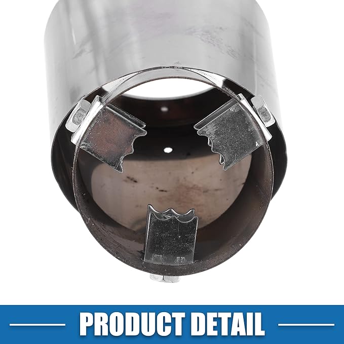 簡単取付 - 1. テールパイプの表面をきれいにする; 2. 先端を排気管にスライドさせます; 3. ネジを締めて排気ノズルを固定します。