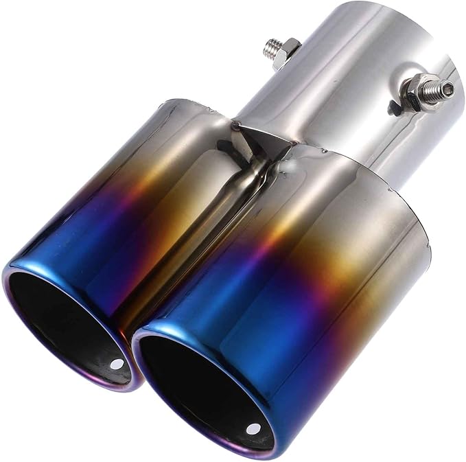 マフラーカッター マフラー エキゾーストパイプ 排気管 2本出し ダブルアウトレット 汎用 車外用品 チップ テールパイプ ボルトオン 金属 適用径61mm チタン焼き調 自転車用