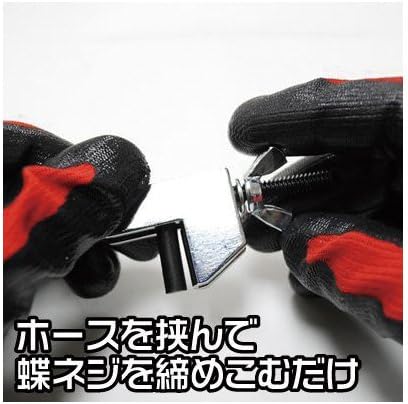 ●コの字の間に燃料ホースやオイルホースを挟み蝶ネジを締め込むだけで液体の流出を防ぐことが可能です。