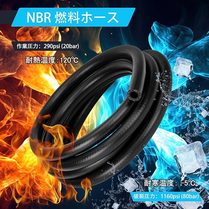 【三重構造設計】ガソリンホースの内層と外層は高品質のNBR素材で作られ、中間層は合成繊維で作られており、通常のホースよりもはるかに耐久性があり丈夫です。