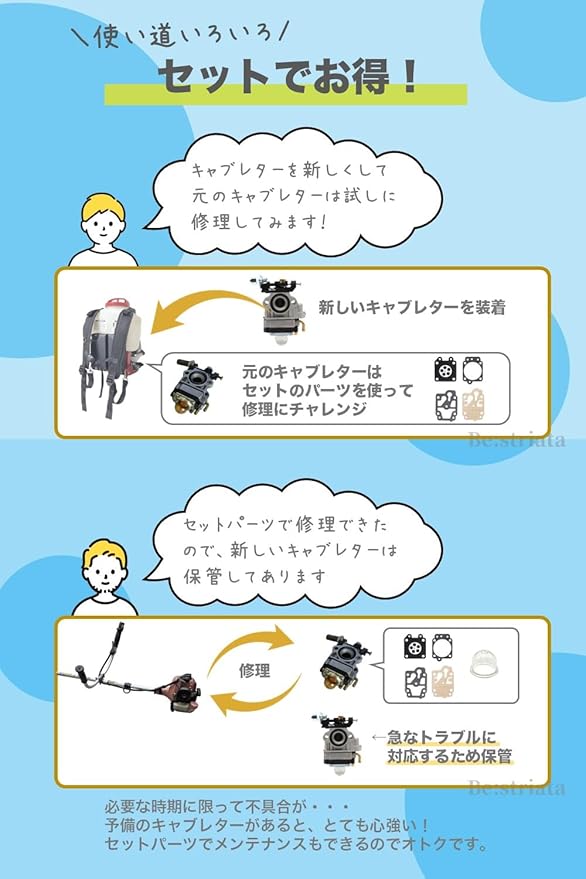 ・ダイヤフラム・燃料ホース・プライマリーポンプ・エアークリーナエレメント・ガスケット など修理に便利なパーツがセットになっております。