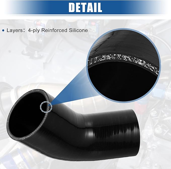 X AUTOHAUX シリコンホース シリコンチューブ インタークーラー ターボ インテーク ラジェーターホース 冷却 接続ホース 汎用 45度 4層 ホースバンド付き 1セット ブラック 内径70mm-76mm