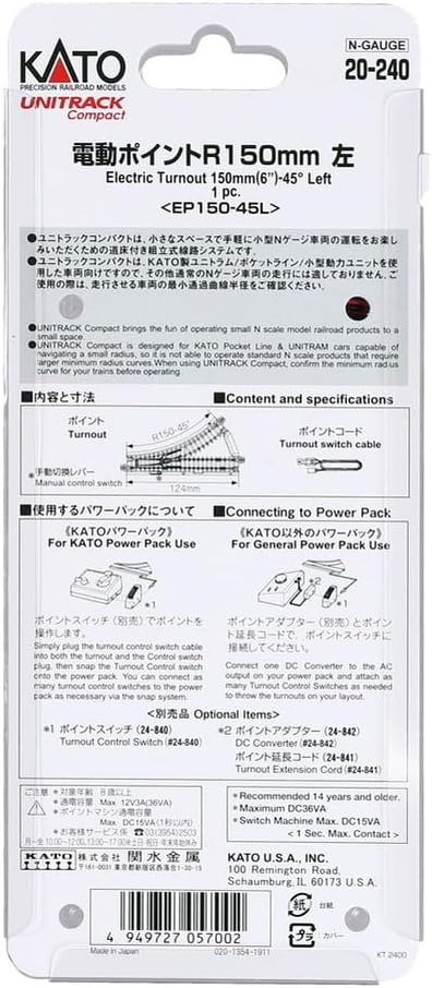 KATO Nゲージ ユニトラックコンパクト電動ポイントR150-45 左 20-240 鉄道模型用品