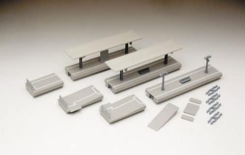 屋根付のホーム 2 、屋根なしのホーム 1、ホームエンド 1、スロープ (左・右) 各1の組み合わせ。