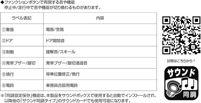 音の加速・減速に合わせて車両の速度が変化する「サウンド同調」タイプですが、「同調設定保存」機能のプログラムを搭載しています。一度コントローラー優先モードに設定すると、任意の解除がない限りモードを維持しますので、これからサウンドボックスを用いた運転をはじめる方でも手軽にお楽しみいただけます。