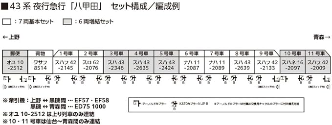 カトー (KATO) Nゲージ 43系 夜行急行「八甲田」 7両基本セット 鉄道模型 客車 10-2181