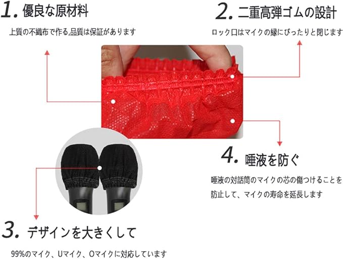 素材:やわらかい不織布で作られており、高品質で、伸縮性があるので、U型マイクでもO型マイクでも装着できます。