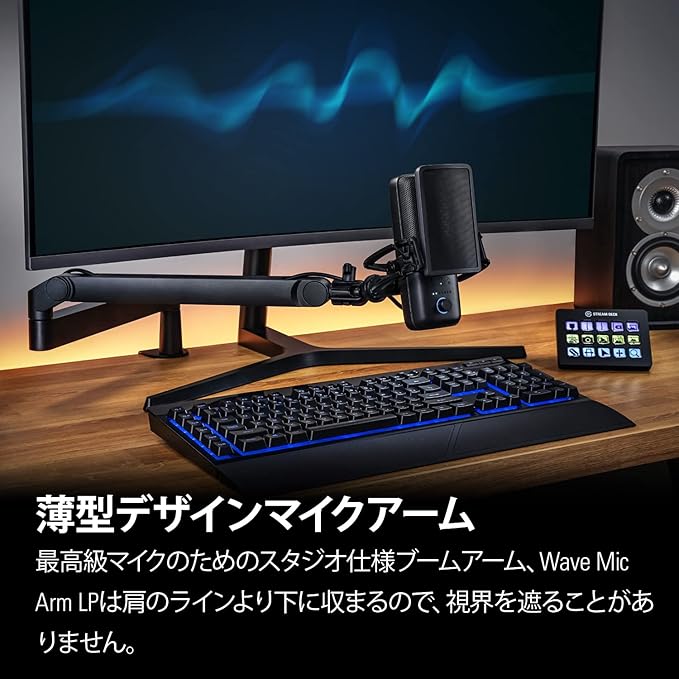 【Amazon.co.jp限定】Elgato Wave Mic Arm LP 薄型デザインマイクアーム 配信/ゲーミング/レコーディング向け クランプ式固定 モニター下部からの設置に適用