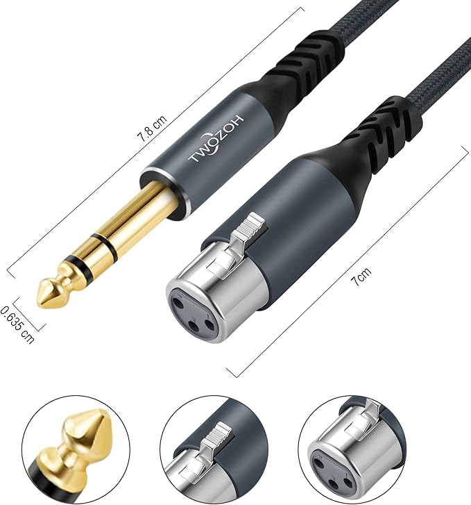 Twozoh XLRメスから1/4 TRSケーブル1M, 編組6.35mmステレオジャック3ピンXLRマイクケーブルにバランスが取れています (Profesional/Hifi)
