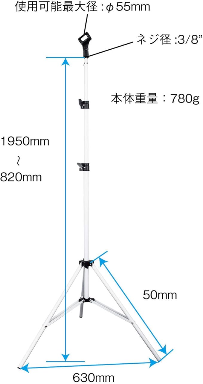 高さ 820mm~1950mm まで調節可能