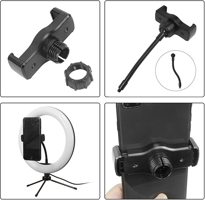 【幅広い用途】様々なスタジオ、コンサート、カラオケマイクスタンドに対応しており、あらゆるセットアップに汎用性を追加できます。 携帯電話ホルダー付き:幅 6cm - 10cm の携帯電話クリップのサイズで、厚さ1.5cmのすべての携帯電話に対応しています。縦向きまたは横向きの360度回転するボールヘッドが付いています。 自分自身で良い視界を調整するだけです。